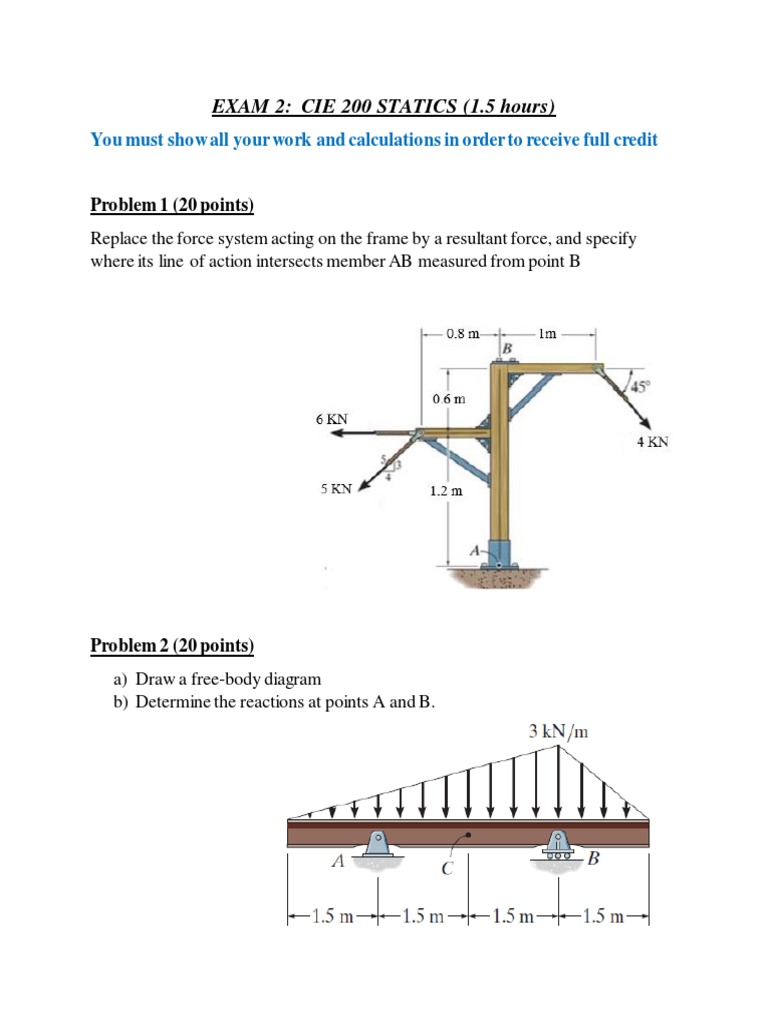 Replace the force system acting on the frame by a resultant force and couple moment at point A. F1 450 N a 2 m F2 300 N b 4 m F3. Replace the force and couple system acting on the frame by an equivalent resultant force and specify where the resultants line of action intersects member BC.